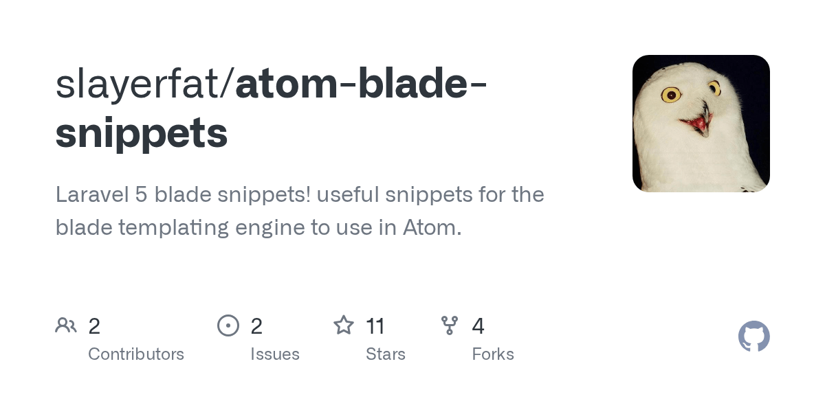 Useful snippets for the blade templating engine to use in …. You should restart atom after the install / update of the package. You should restart atom after the install / update of the package. Specifically, check out hacking atom in the atom flight manual to get started. Handy atom editor snippets to create laravel collective forms inputs preformated for twitter's bootstrap 3. 02.11.2015 · laravel snippets for atom text editor. You can do it via the gui (preferences > install) or with the command line: Any changes you make will be instantaneous after you save. 13.02.2017 · i decided to port some of my laravel and php snippets into an atom package to get a feel for how to create packages and snippets in atom. Specifically you're looking for /snippets/laravel.cson file, and i think the section directive, which is line 628. I am pleased with how easy it was to get started. Specifically you're looking for /snippets/laravel.cson file, and i think the section directive, which is line 628.